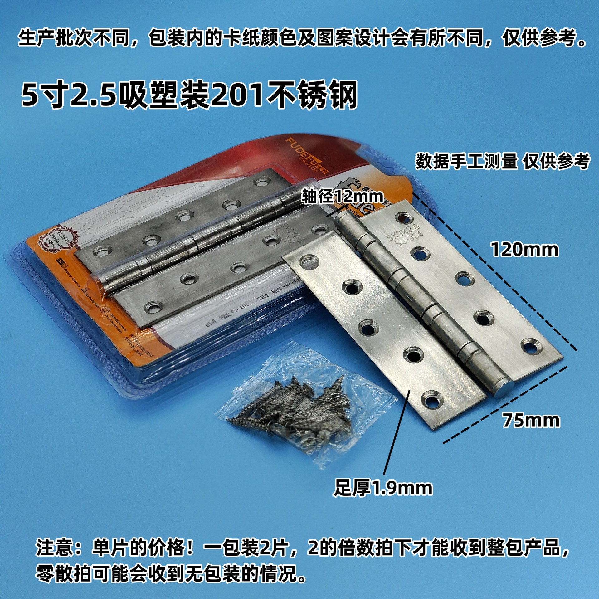 - Specifications: Authentic 304 standard 2.5-inch thickened [20/box, 1200/carton]