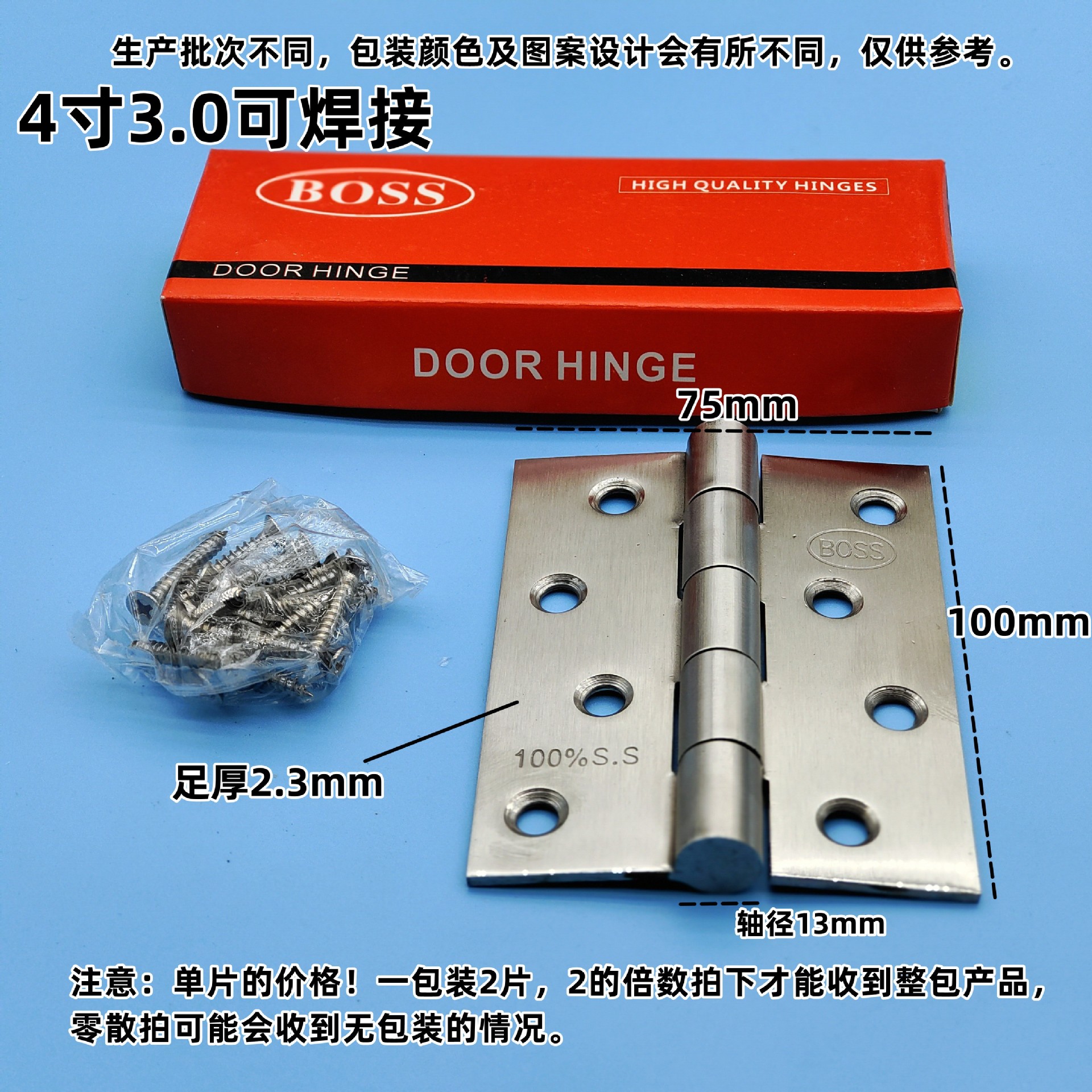 - Specifications: BOSS can weld 4-inch 3.0 (stainless steel) with stainless steel screws [100 pieces/box]