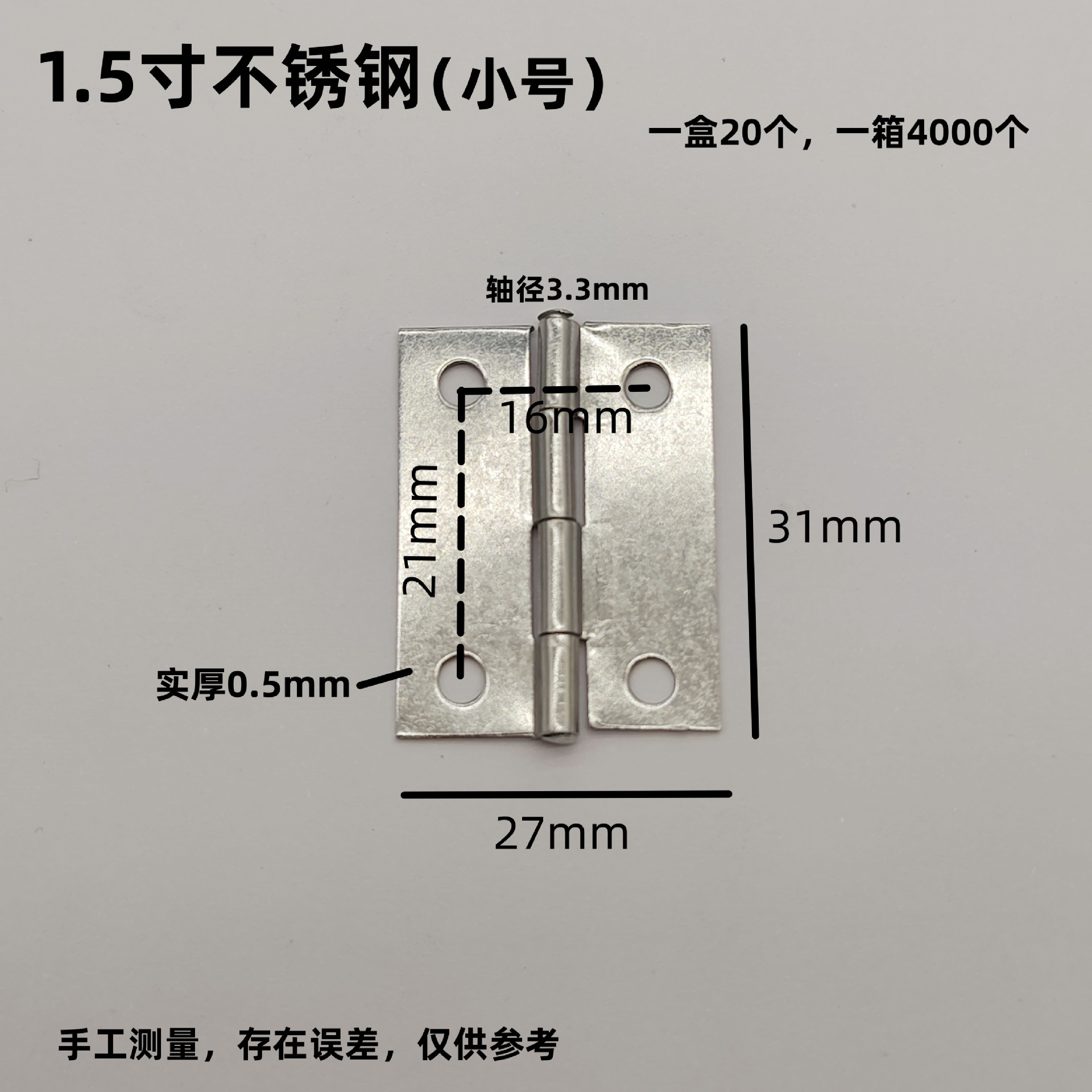 - Specifications: Small size 1.5 inches (stainless steel) [20 pcs/box, 4000 pcs/box]