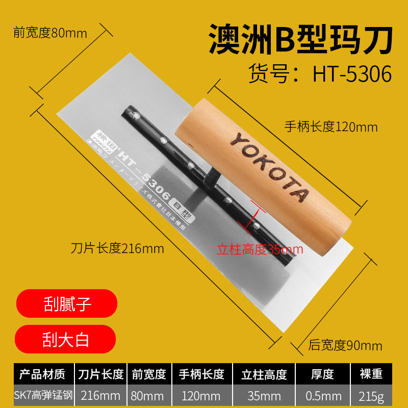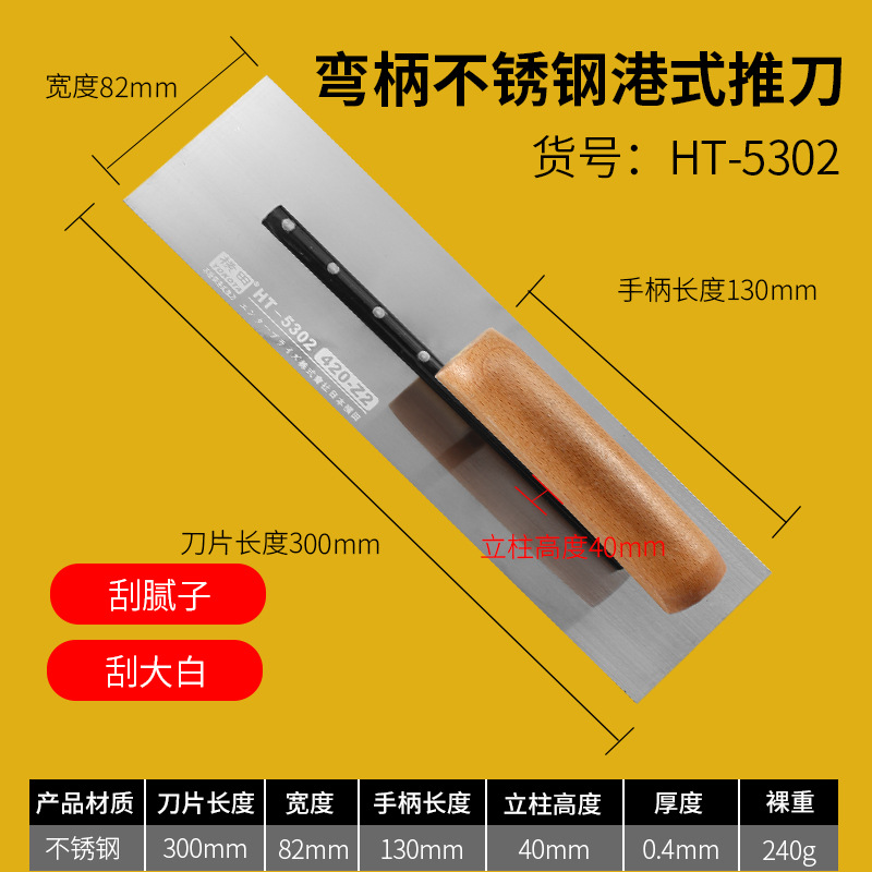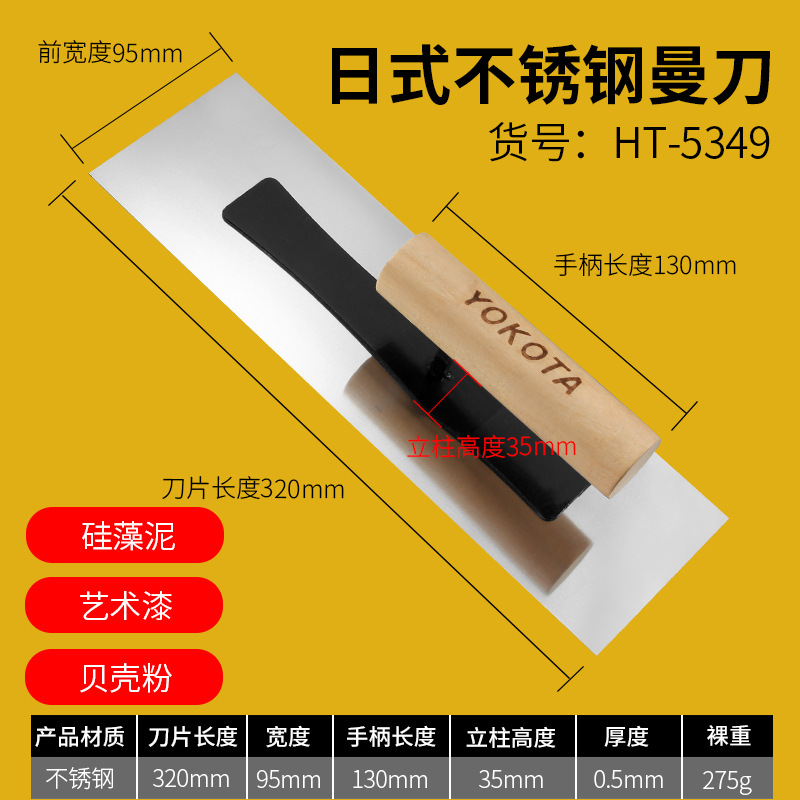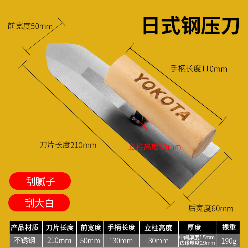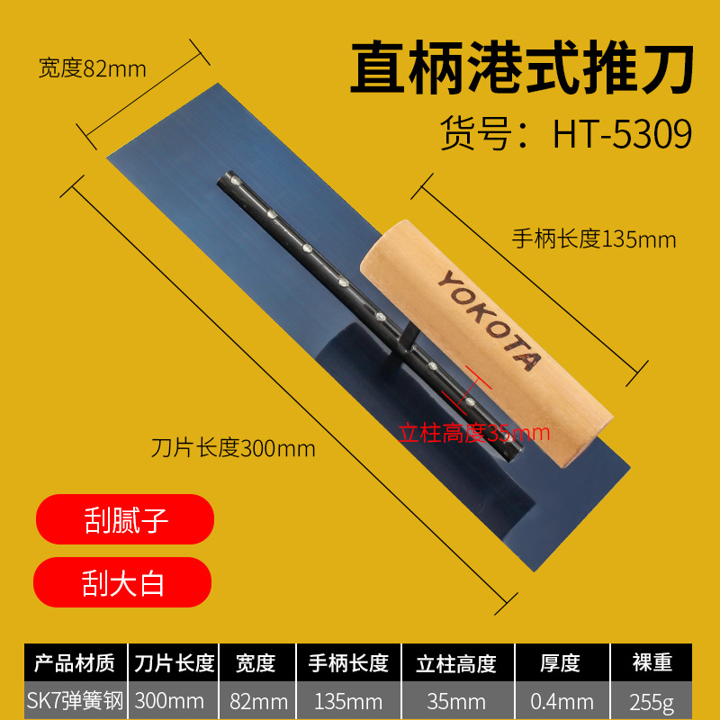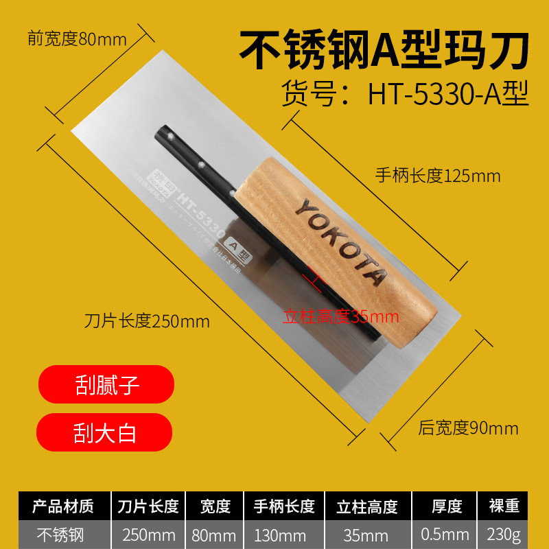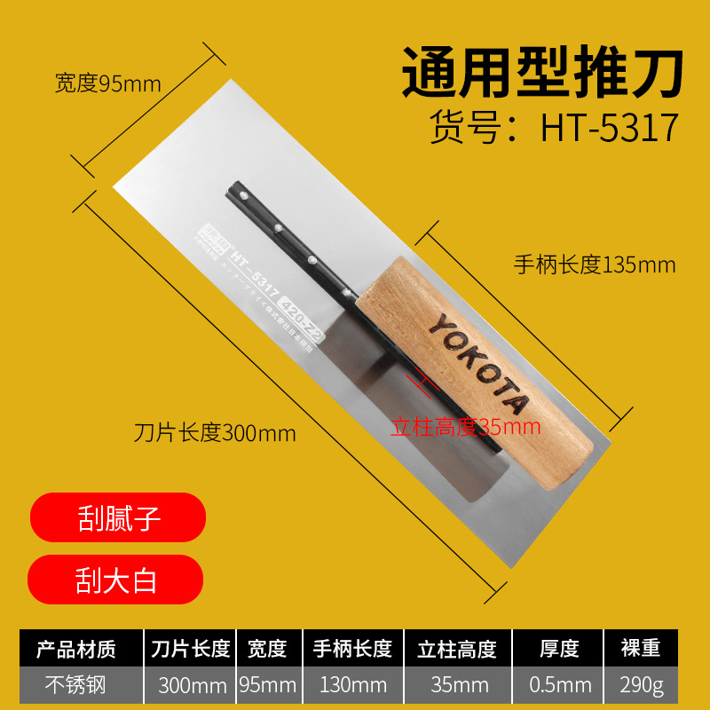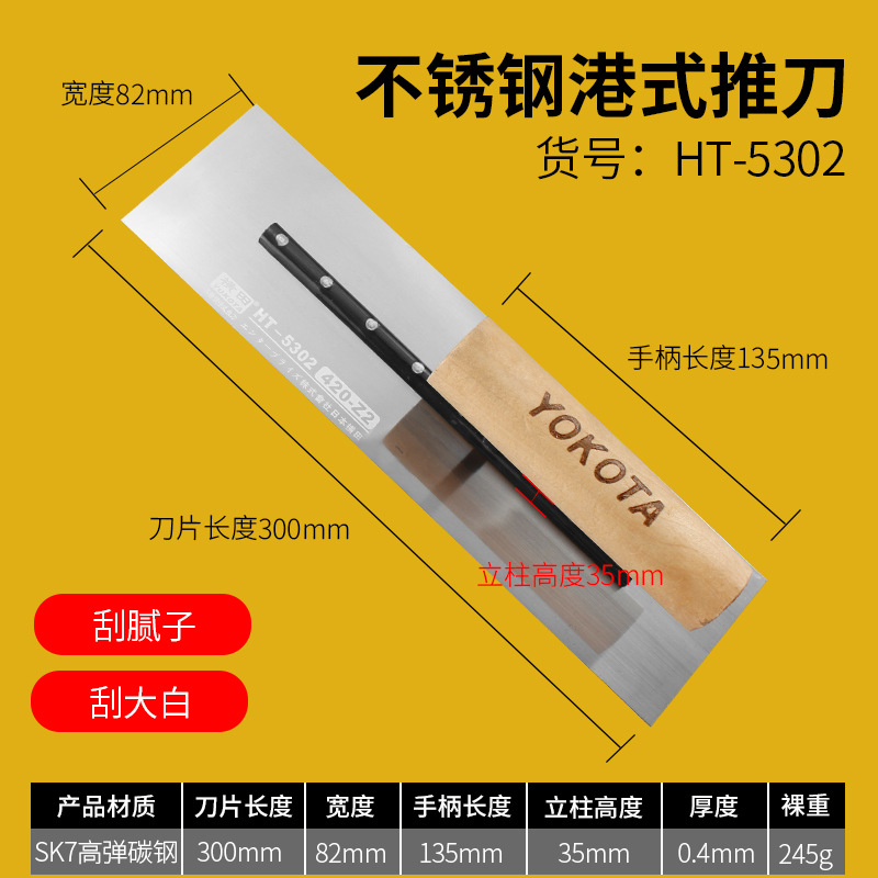 - Specifications: 5302 Yokota stainless steel Hong Kong style push knife (putty scraping)