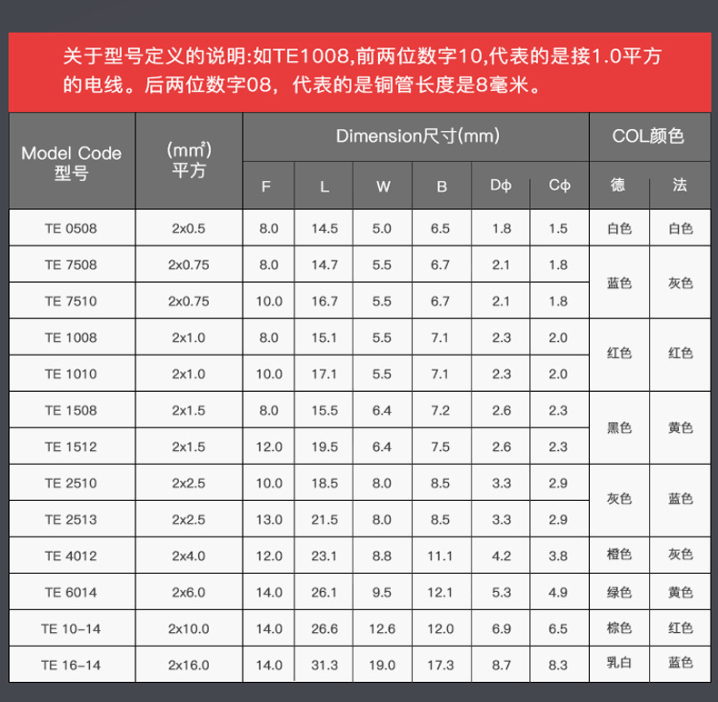 - Specifications: TE1008 (1000 pieces)