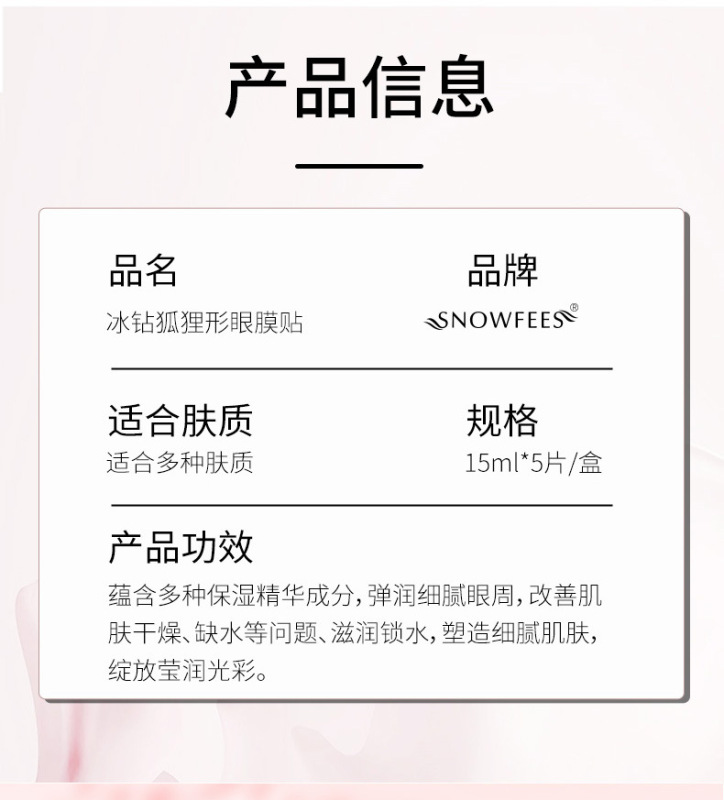 - Product Specifications: Ice diamond fox-shaped eye mask patch, 5 pieces in box
