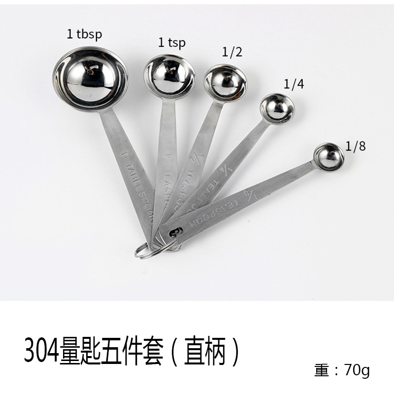 - Specification: 304 Stainless Steel Measuring Spoons Five-piece Set (Straight Handle)