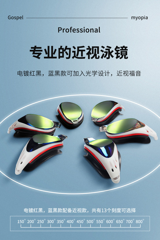 - Abbreviation: Anti-fog, waterproof, anti-UV, electroplated myopia swimming goggles