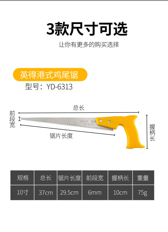 - Specifications: Yingde Hong Kong style chicken tail saw 10 inches