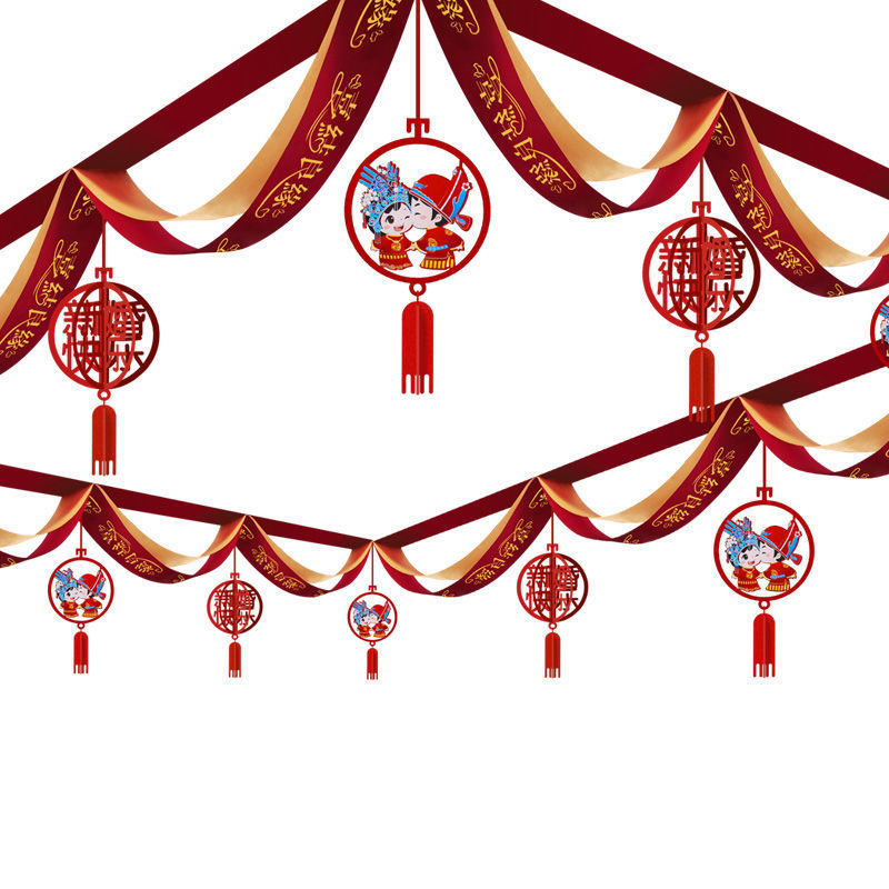 - Specifications: 4 burgundy round happy wavy flags + Zhengxi three-dimensional pendants (16 sticky hooks included)