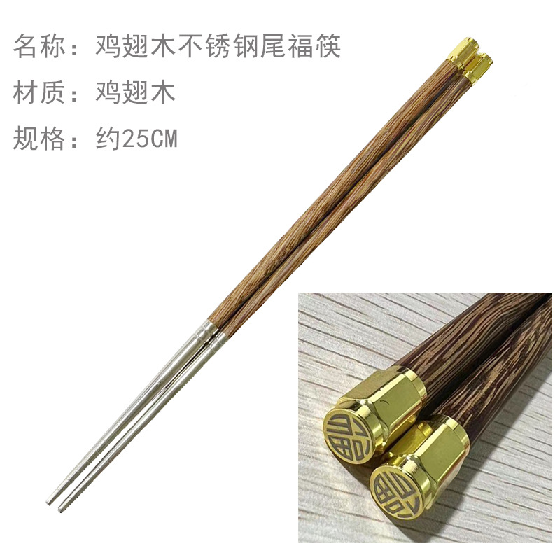 - Specifications: Chicken wing wood stainless steel tail blessing chopsticks