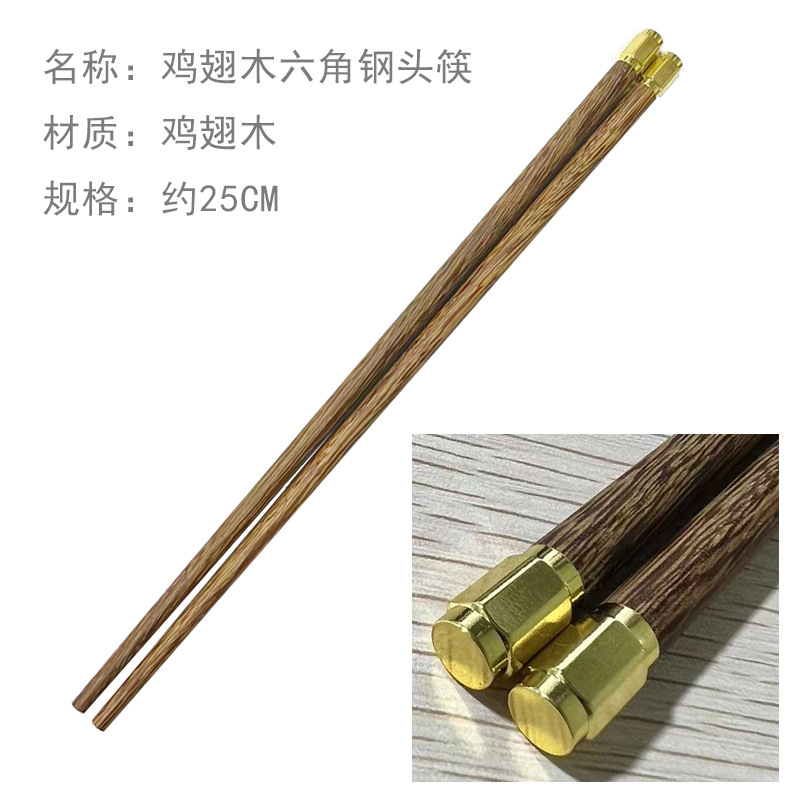 - Specifications: chicken wing wood hexagonal steel tip chopsticks