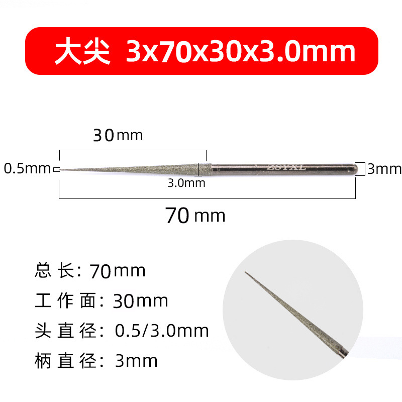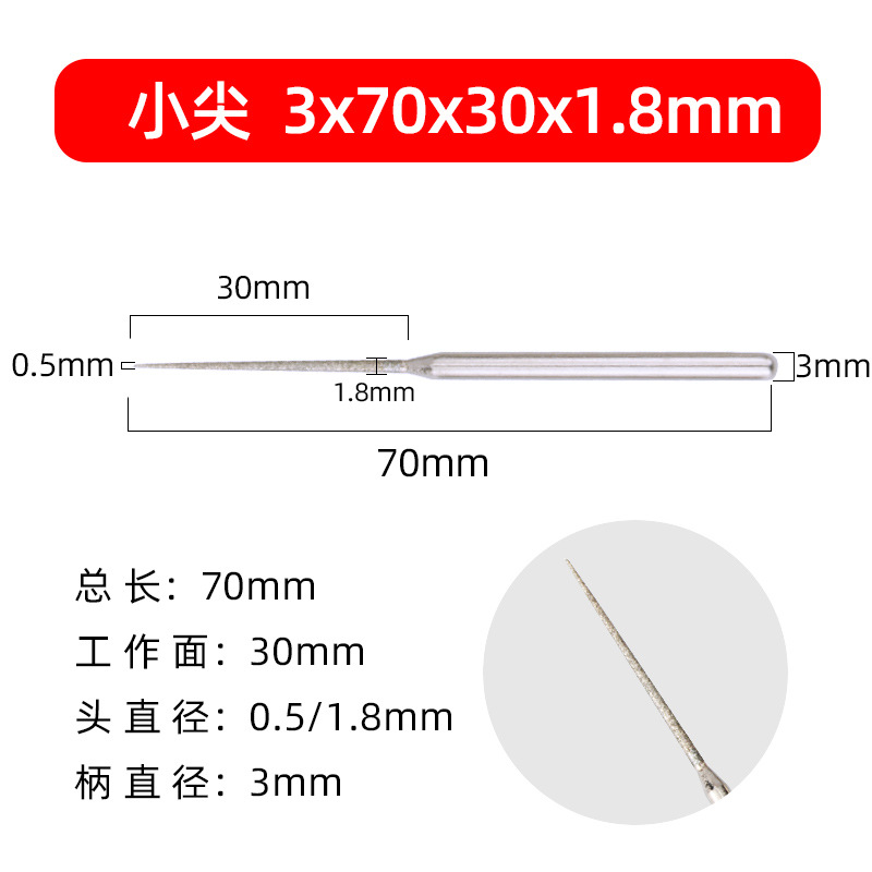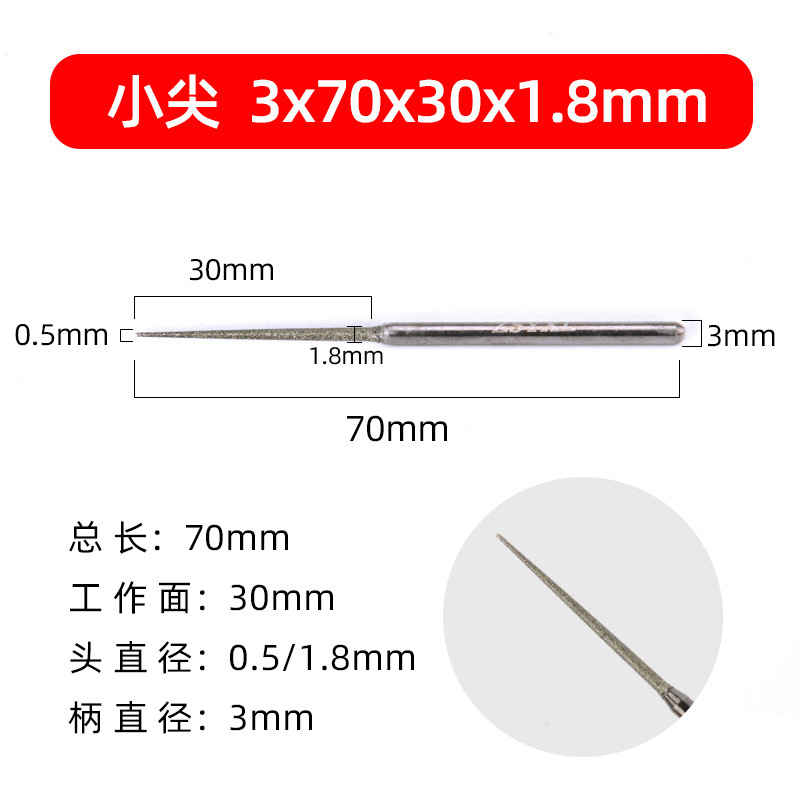 - Specifications: 3x1.8x30x70mm small tip