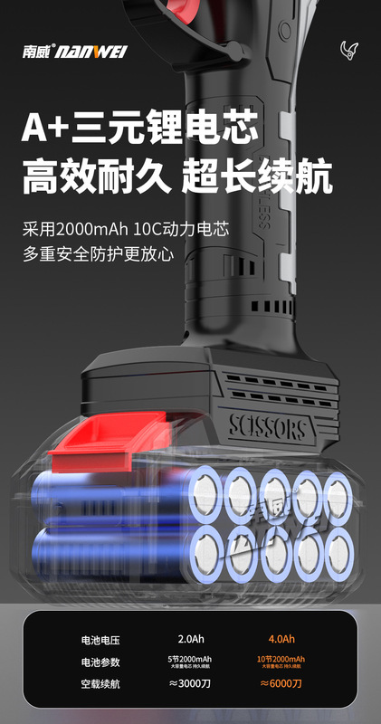 - Specifications: Brushless digital display fruit branch shears [6cm·4.0Ah per battery] + free accessories