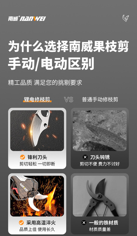 - Specifications: Brushless fruit pruners [5cm·2.0Ah two batteries] + free accessories