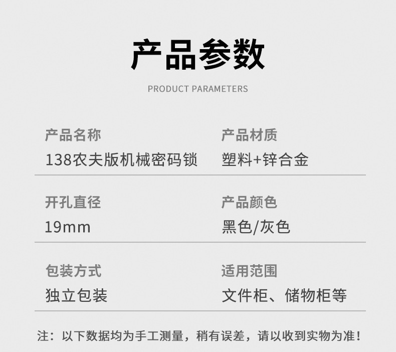 - Specifications: 138 farmer version - combination lock (gray round surface)