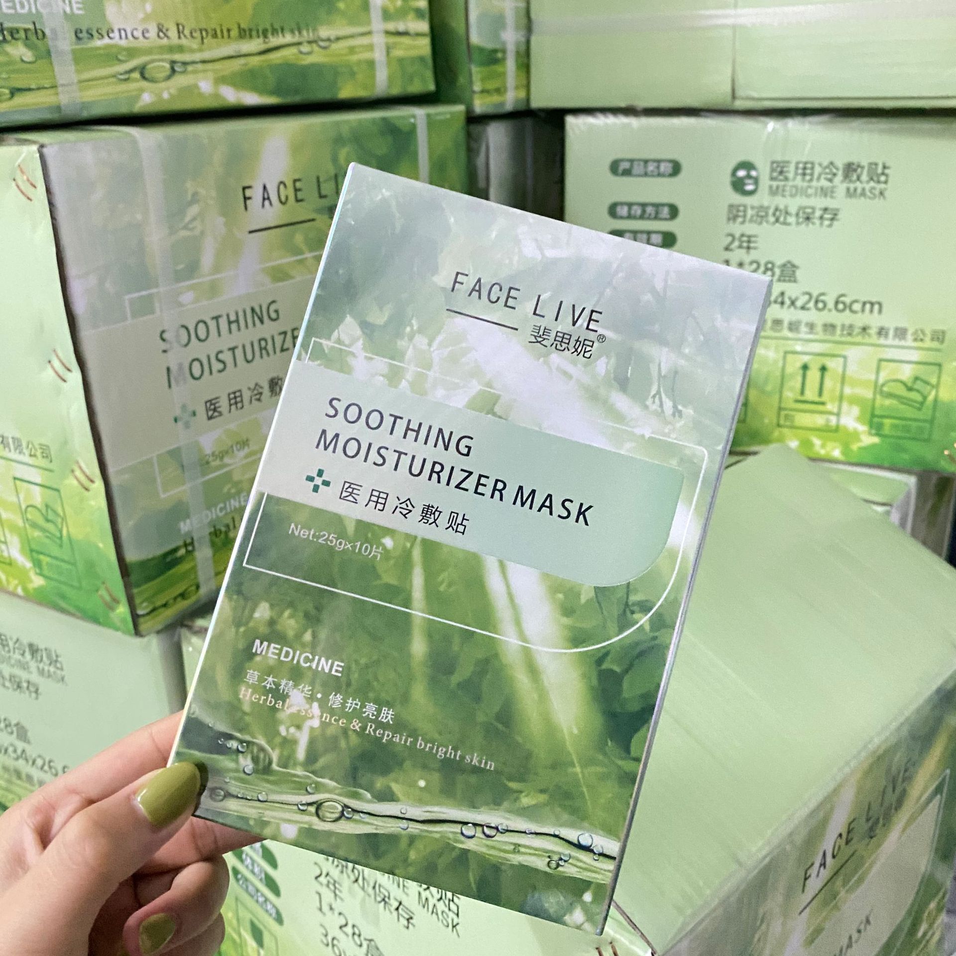 - Specification: Cosmetics Feisini Green Mask (10 pcs/box)