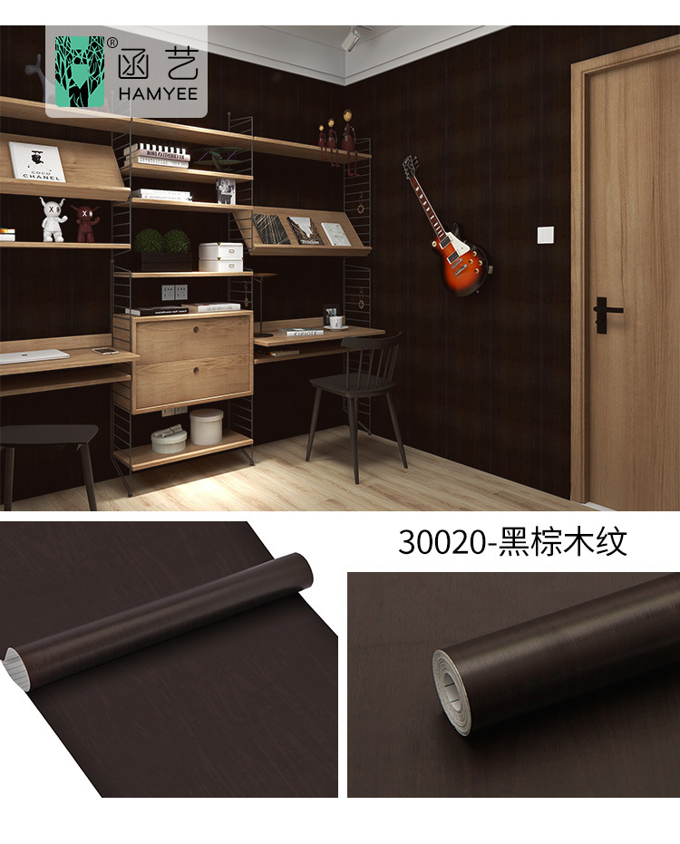 - Design color: 30020 black brown wood grain-0.45*10 meters