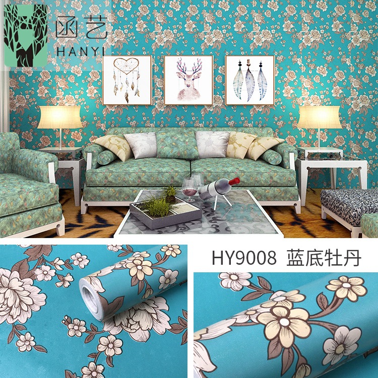 - Color: 9008 blue background peony-0.45*10 meters