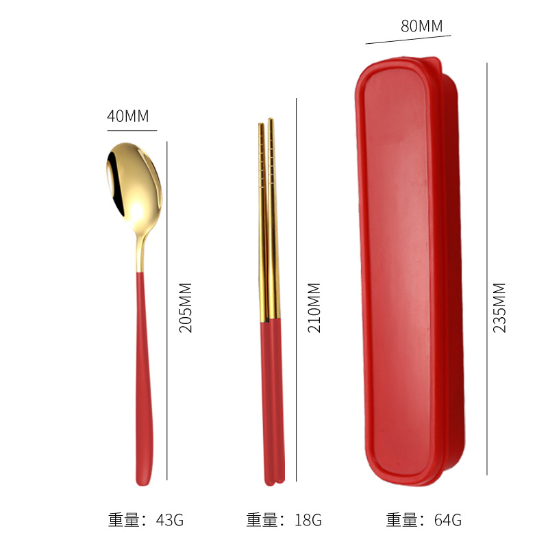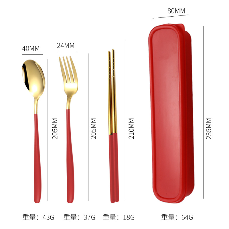 - Specifications: Red gold - spoon, fork, and chopsticks set