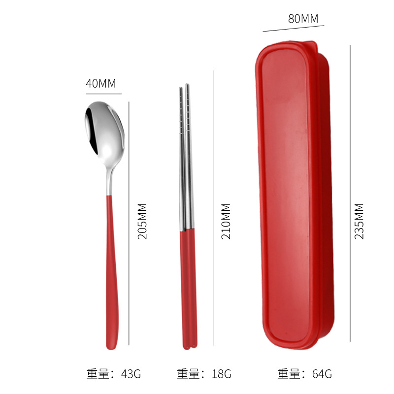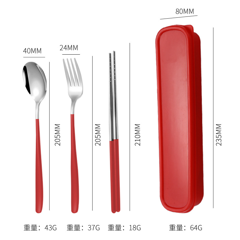 - Specifications: Red silver - spoon, fork, and chopsticks set
