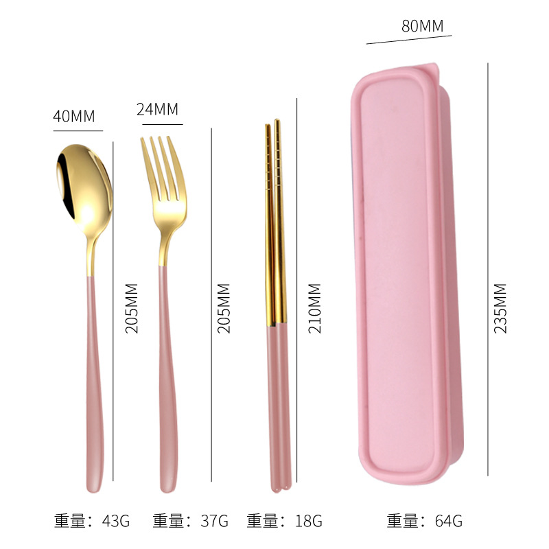 - Specifications: Pink gold - spoon, fork, and chopsticks set