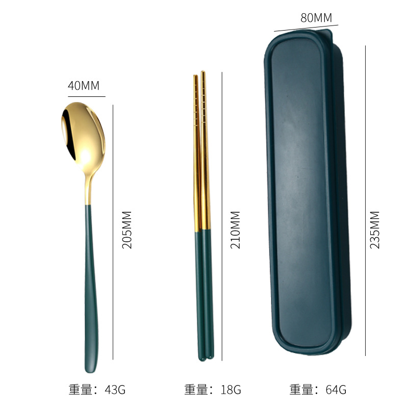 - Specifications: Green gold - spoon, fork, and chopsticks set