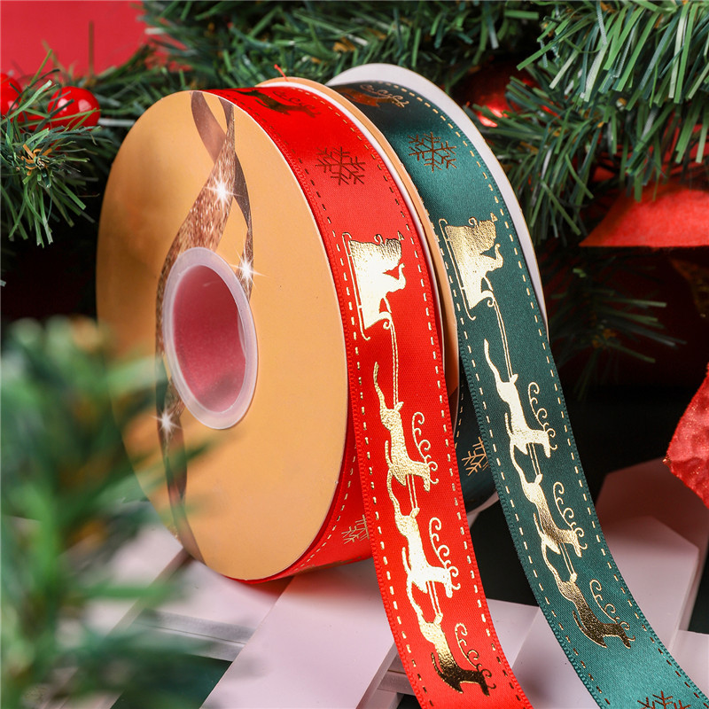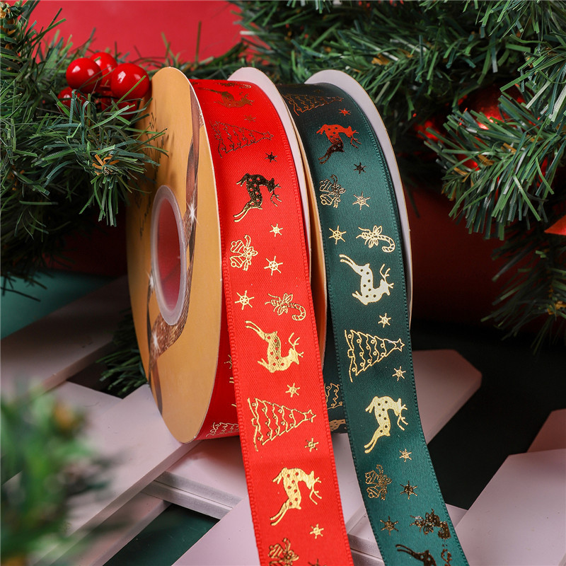 - 規格型號:燙金滌綸帶2.5cm5號綠色聖誕麋鹿50碼/卷