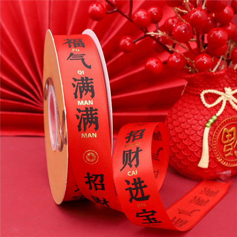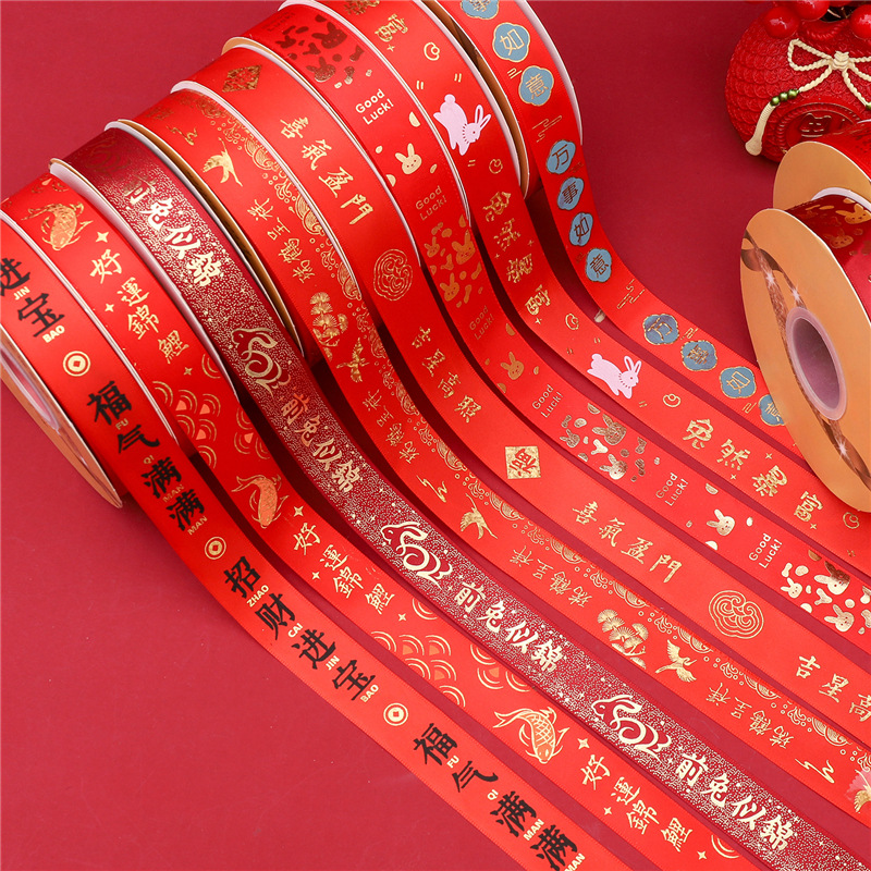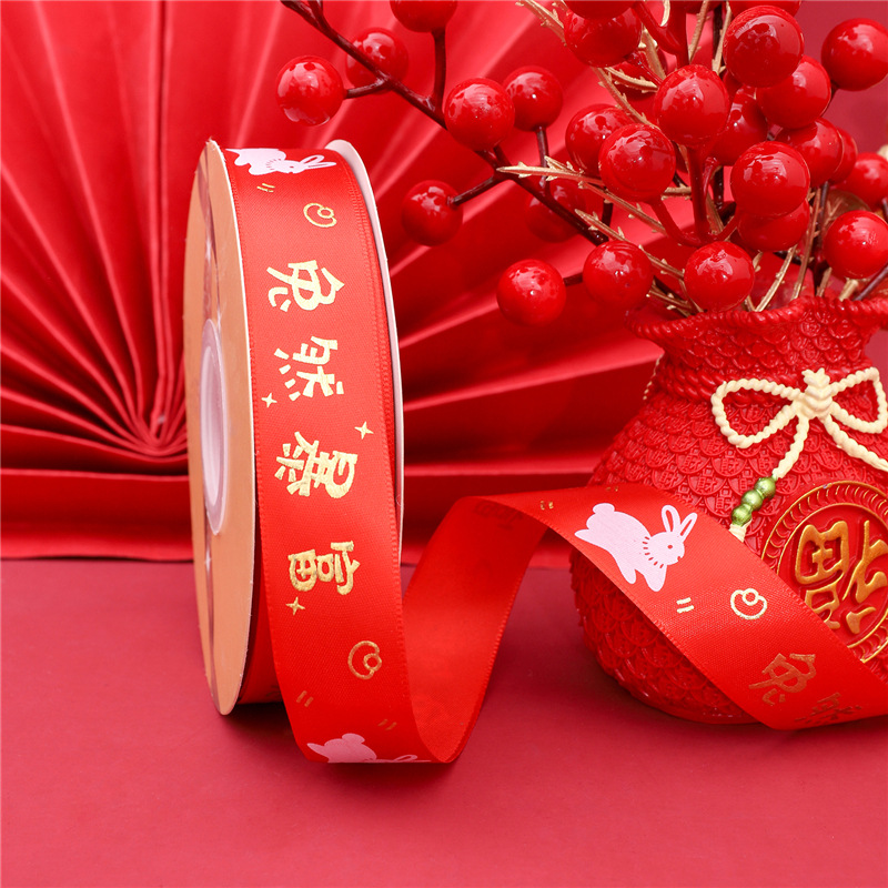 - Specification: 2.5cm Polyester Ribbon 50 yards / Piece - New Year Series - Rabbit Red Full of Blessings and Wealth