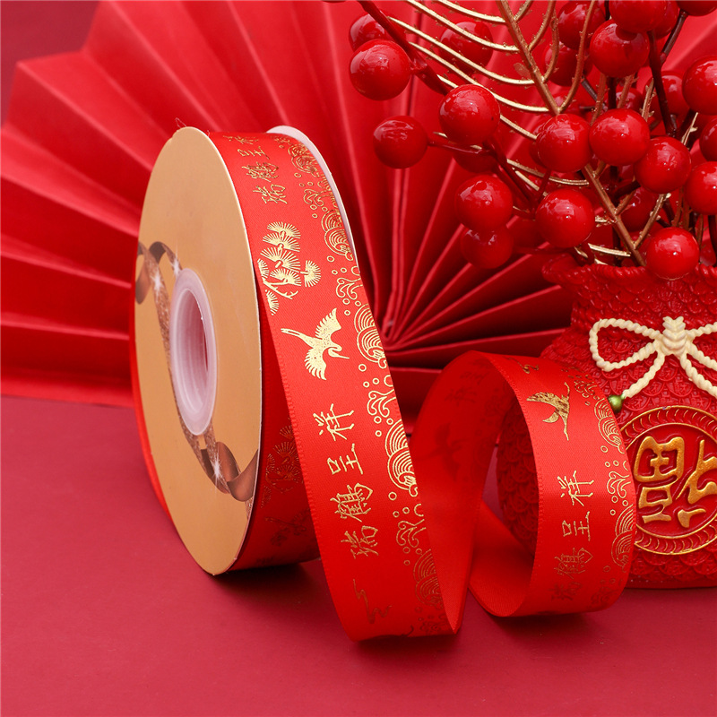 - Specification: 2.5cm Polyester Ribbon 50 yards / Piece - New Year Series - Rabbit Red Auspicious Crane