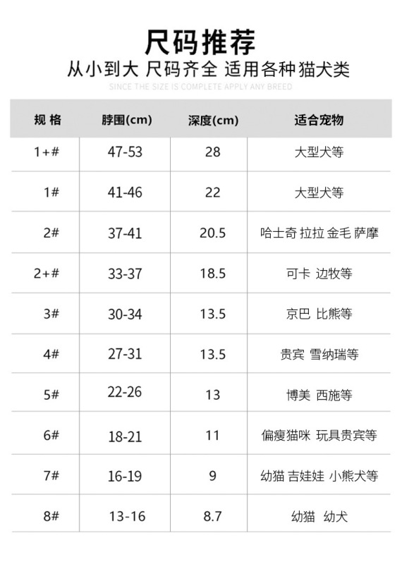 - Specifications: 8# suitable for neck circumference 9-13#, depth 8.7cm