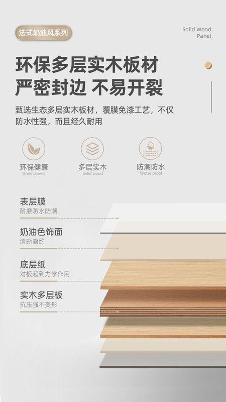 - Door panel material: multi-layer solid wood board
