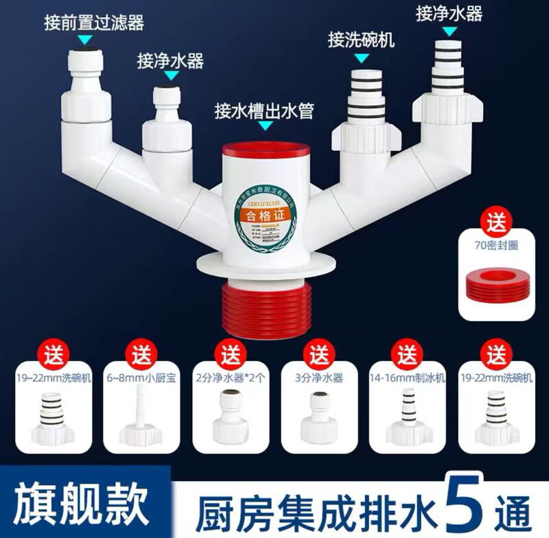 - Specification: Kitchen Drain Pipe Integrated Five-Way 50 and 75 Universal Odor Plug