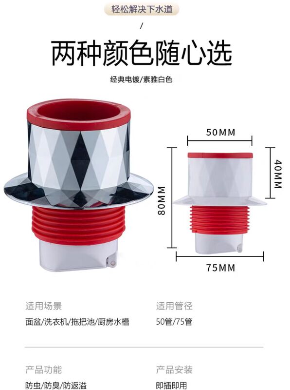 - Specification: Kitchen Drain Pipe Integrated Three-Way 50 and 75 Universal Odor Plug