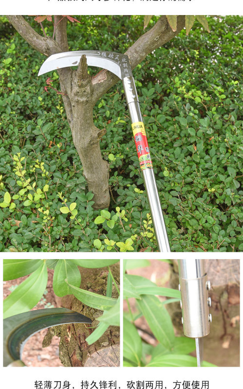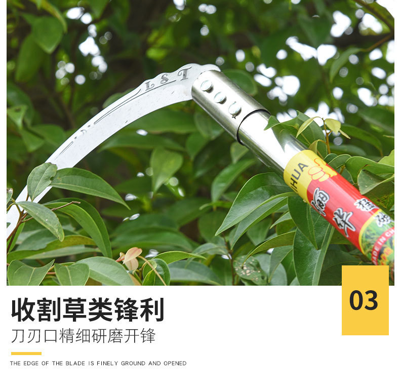 - Specifications: Slashing sickle + 35cm stainless steel handle