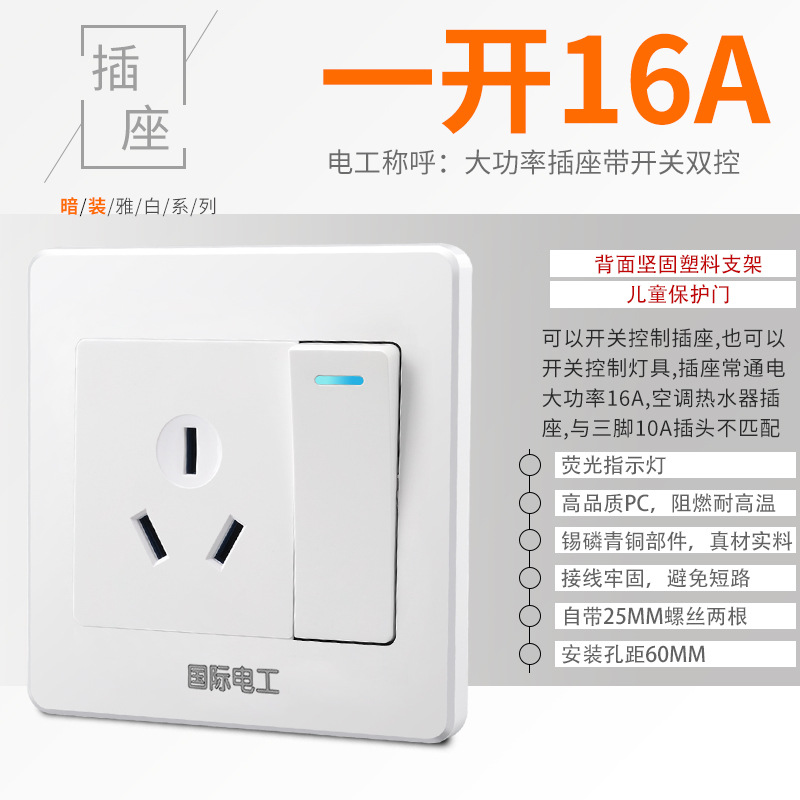 - Model: One-on-one 16A three-hole air conditioning switch
