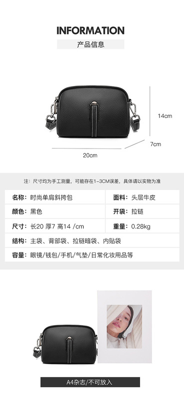- Internal structure of the bag: Zipper secret pocket