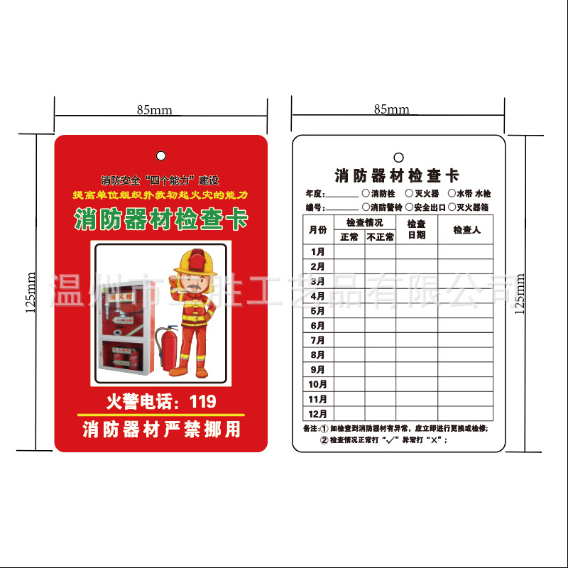 - Specification: 8.5x12.5*Fire Equipment Inspection Card