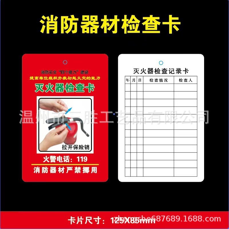 - Specification: 8.5x12.5*Fire Equipment Inspection Card 1