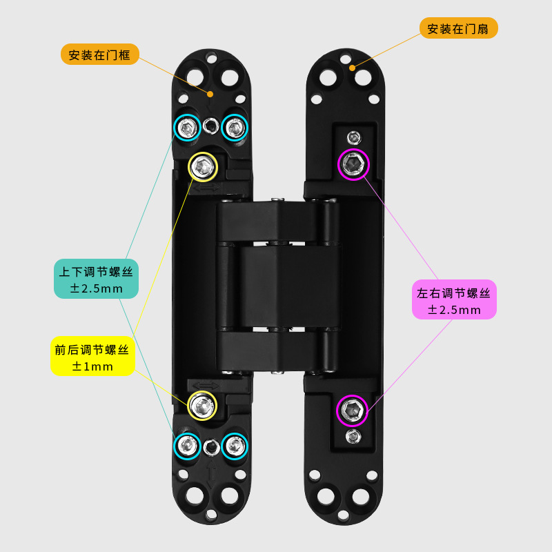 - Specification: 150*25 3D Adjustable Hidden Hinge [Black] [Price per piece]
