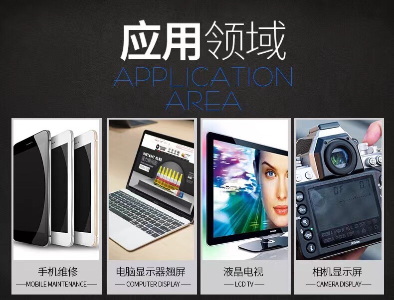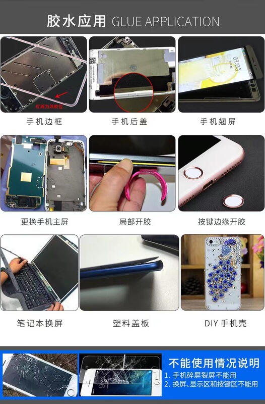 - 用途範圍:手機屏幕膠水外屏玻璃換屏維修手機後蓋邊框翹屏密封膠