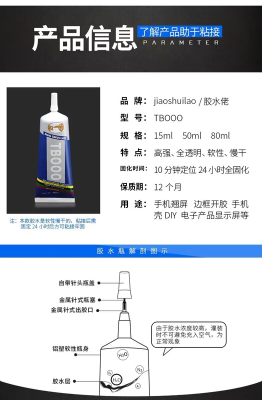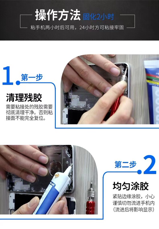 - 功能:手機屏幕膠水外屏玻璃換屏維修手機後蓋邊框翹屏密封膠