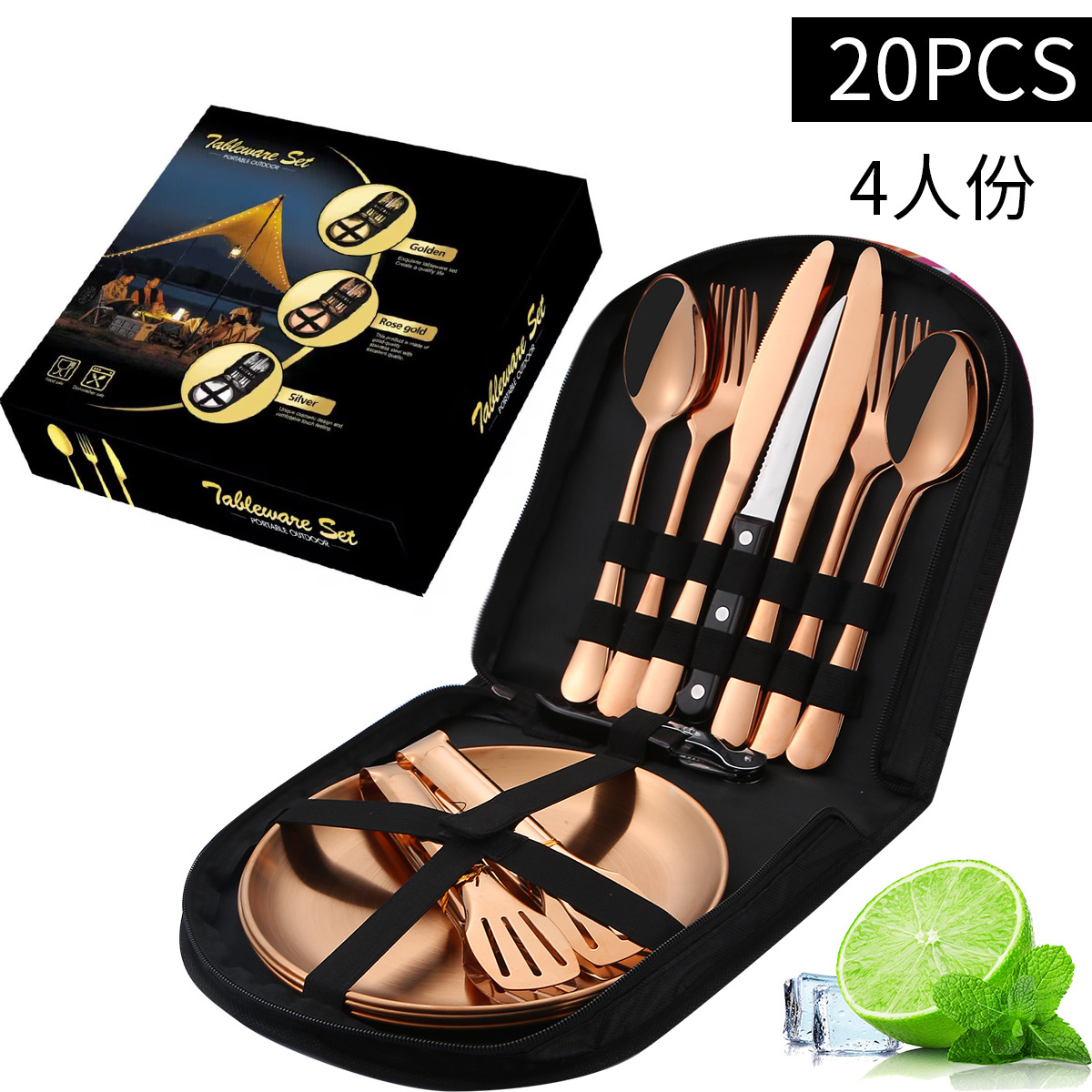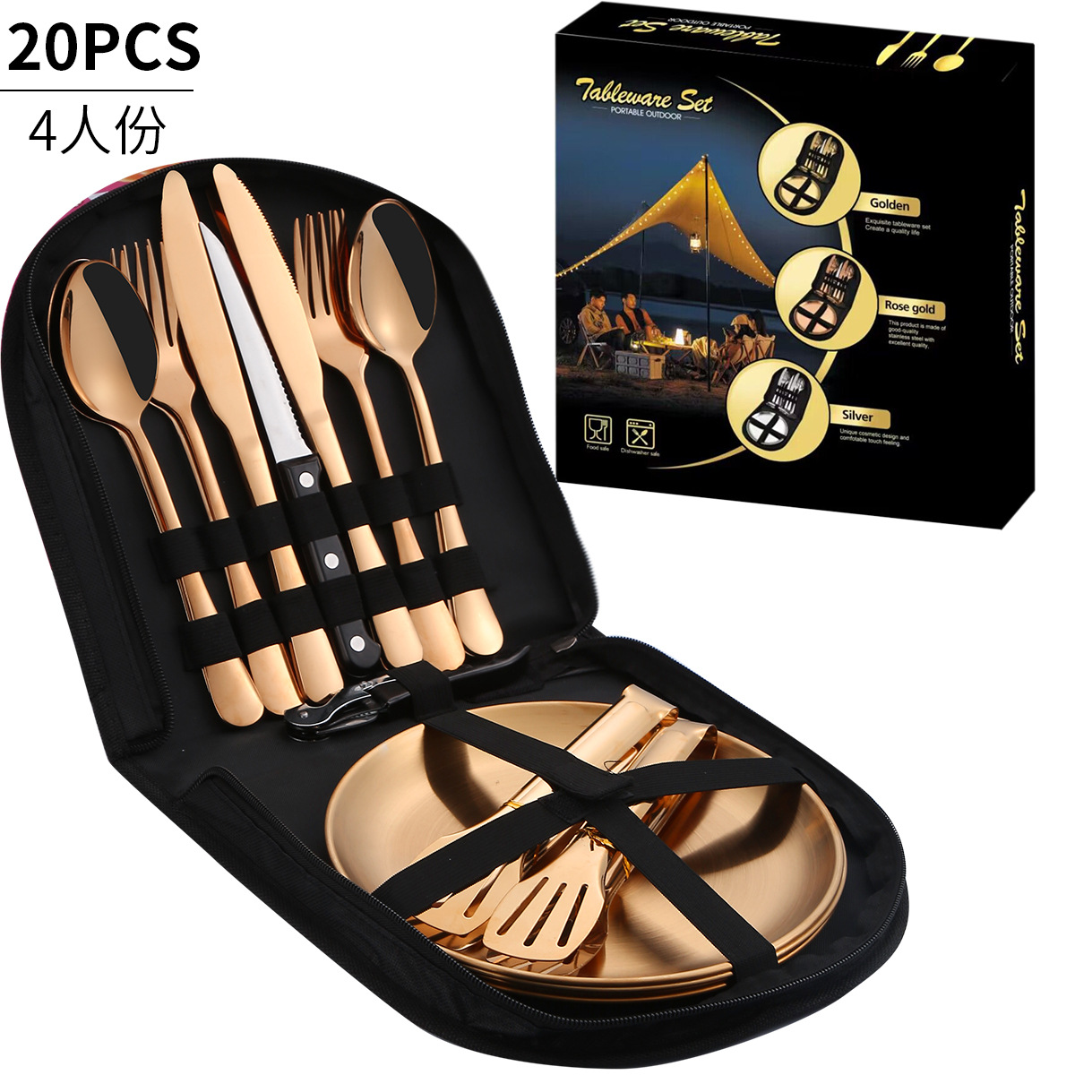 - 規格:玫瑰金20件套