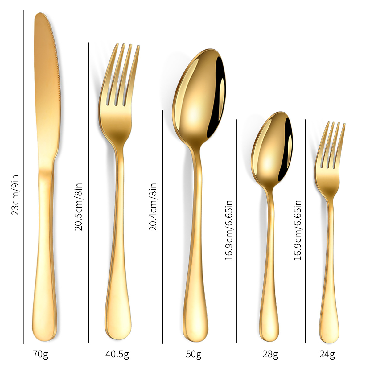 - 套裝清單:餐刀,餐勺,餐叉,茶勺,茶叉