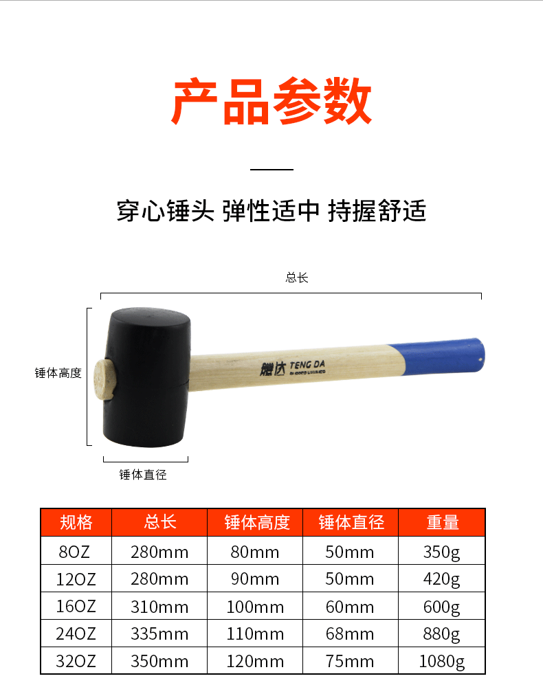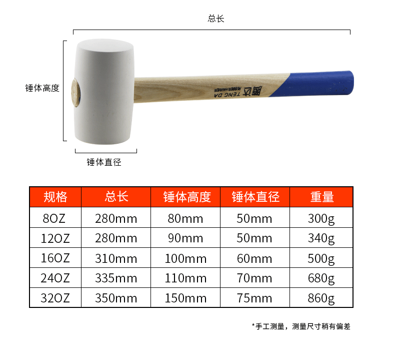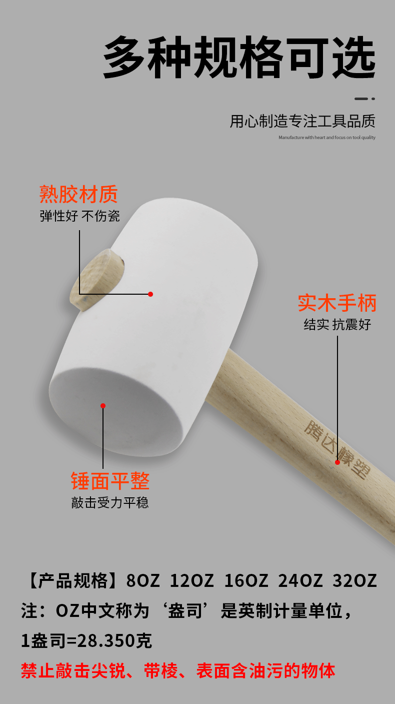 - Model: White 24OZ rubber hammer