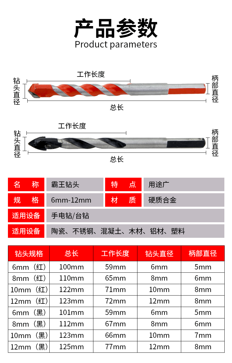 - Specification Model: 6mm霸王钻【Red】