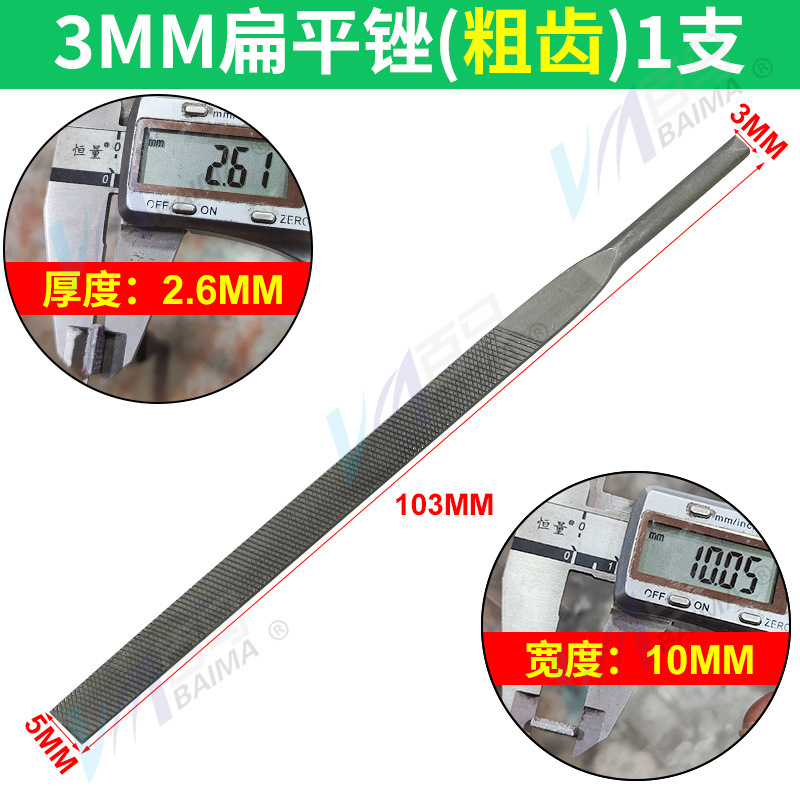 - Model: Fine-tooth 3mm flat file (one piece)