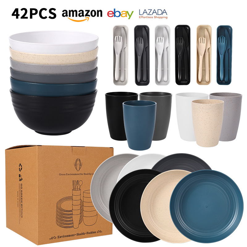 - 規格:混色6人份42件套(黑白米深灰淺灰藏藍)