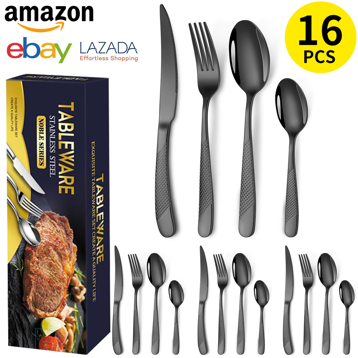 - Specifications: Black 16-piece set