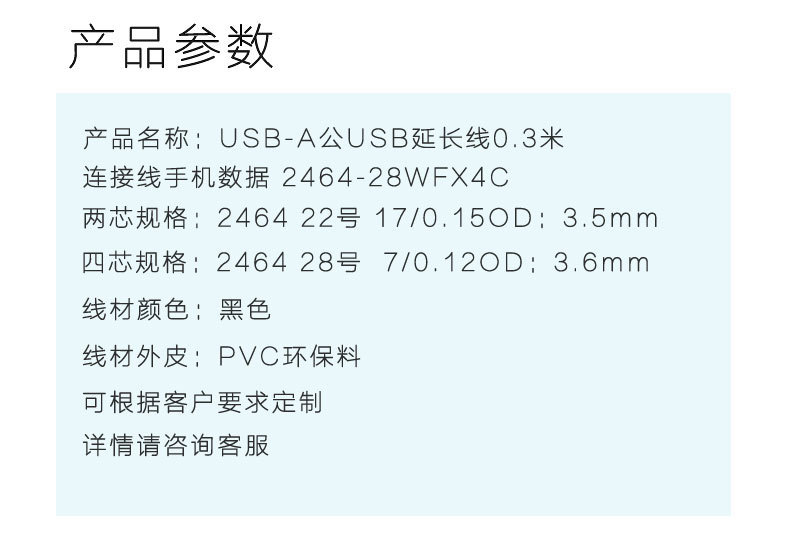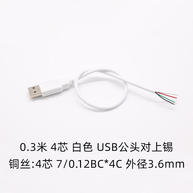 - Specifications and models: White 4-core male plug 0.3 meters