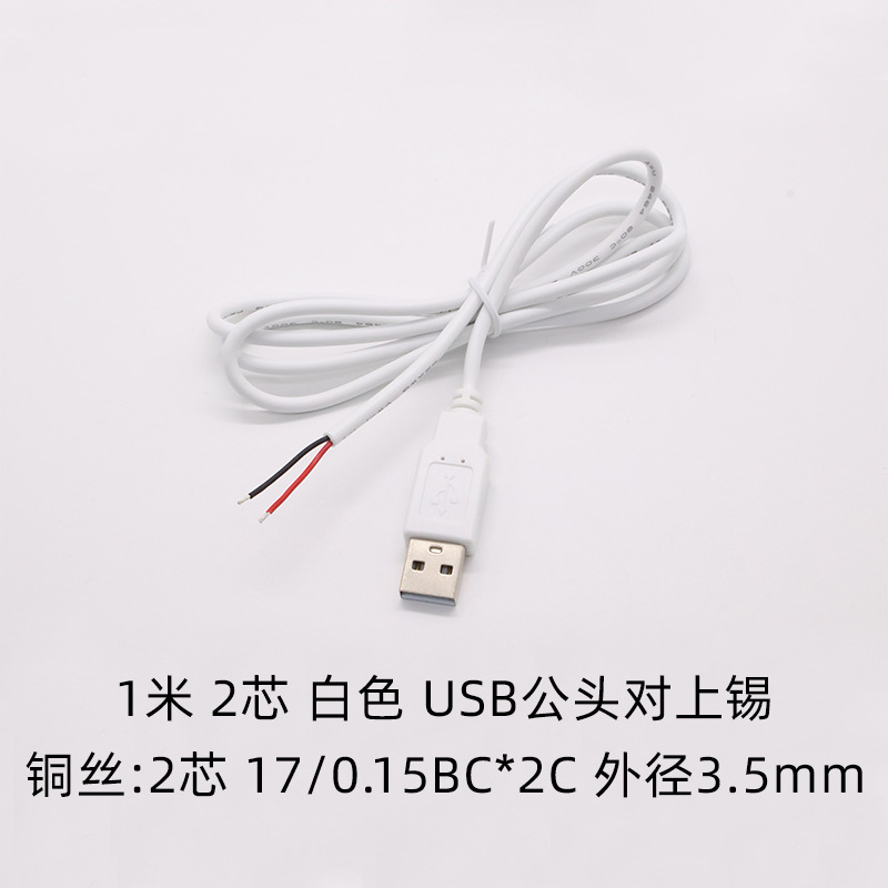 - Specifications and models: White 2-pin male plug 1 meter