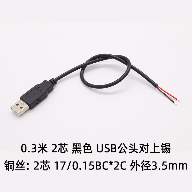 - Specifications and models: Black 2-core male plug 0.3 meters