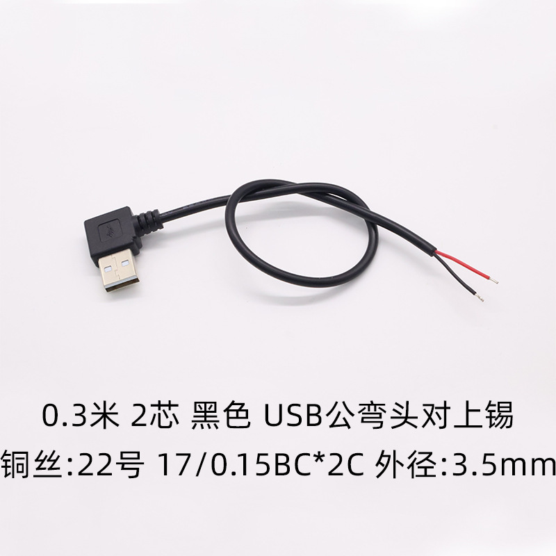 - Specifications and models: Black 2-core male elbow 0.3 meters