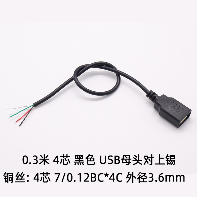 - Specifications and models: Black 4-core male plug 0.3 meters